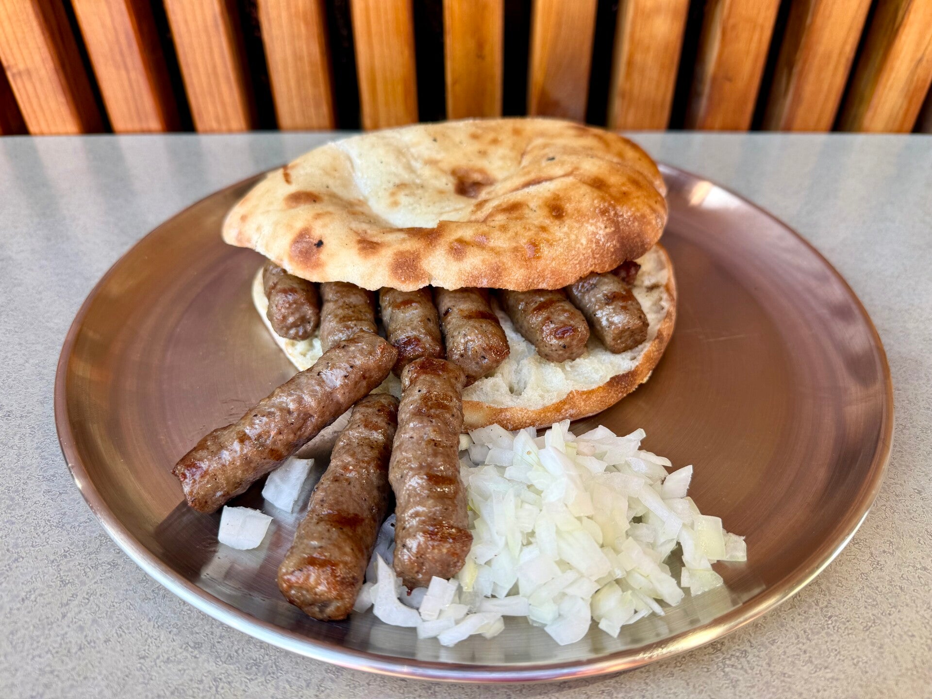 Traditional Balkan grilled minced beef sausages, seasoned and grilled to perfection. Juicy, flavorful, and a true street-food classic,served with fresh onions and homemade bread